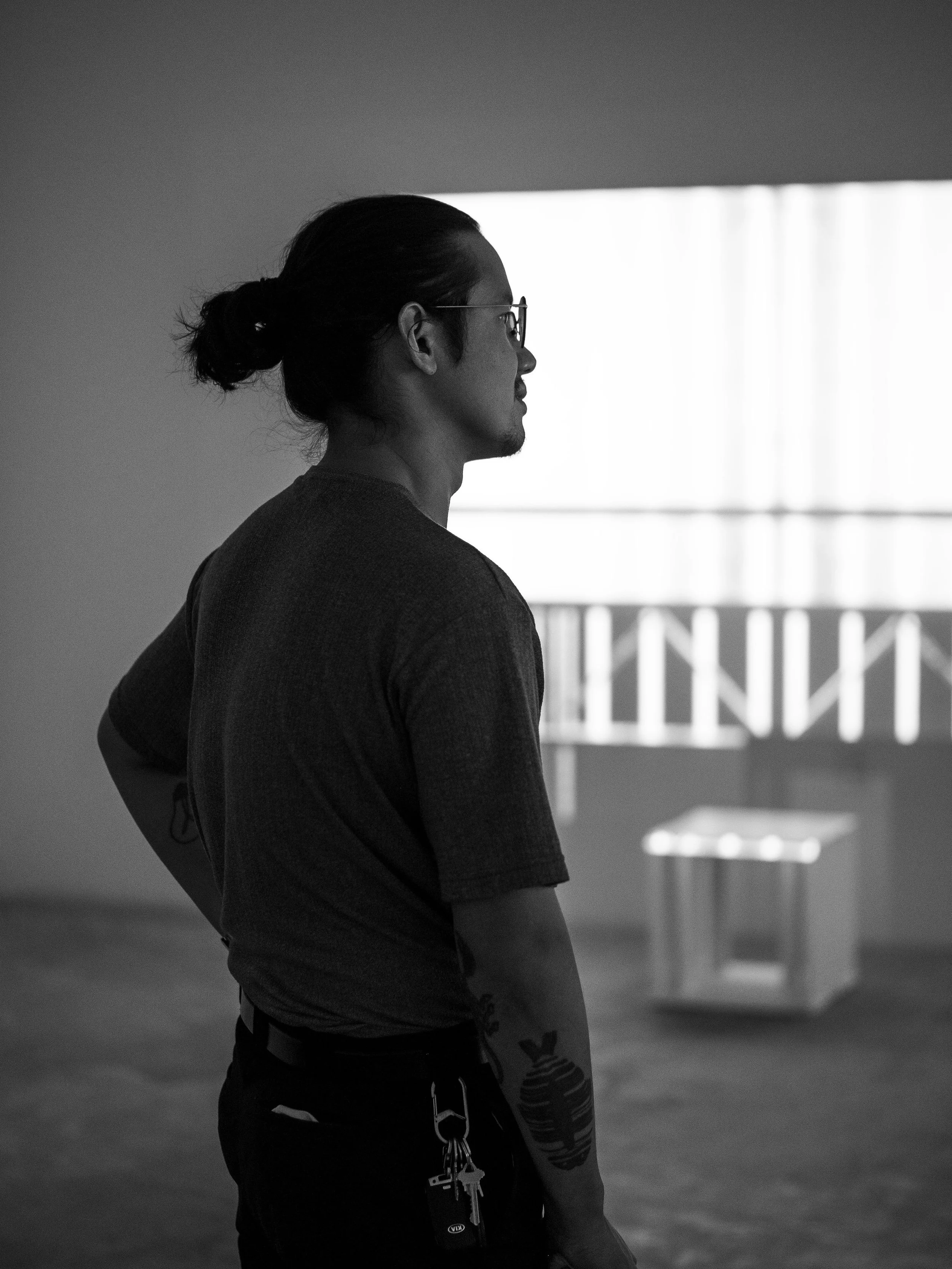 “Signs of Life.” Installation with two-channel projection and chairs made of MDF and PVC pipe. Sanitary Tortilla Factory, 2024.